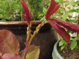 Tonight I released hundreds of live ladybugs on aphid-covered roses. They had been in a plastic container in a fridge for months and as soon as they began to warm up, they were active and hungry. They swarmed out onto my hand, wrist and up my arm. To have any other bug crawling all over my skin would have been more than unsettling. But something about these bright little beetles makes it okay. Especially since they are so polite as to have ‘lady’ in their name. But these little beauties have a dark side. They are amazing predators. Feasting, munching, chewing and lunching on aphids, those bad bugs that suck the life out of our plants. By the end of the ladybugs life, they can consume up to 5,000 aphids. Busy little bugs. This web site (http://www.ladybuglady.com) has all kinds of info on ladybugs. If you are looking for an organic pest control, try ladybugs in your garden!