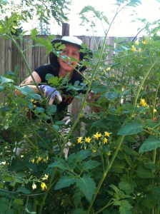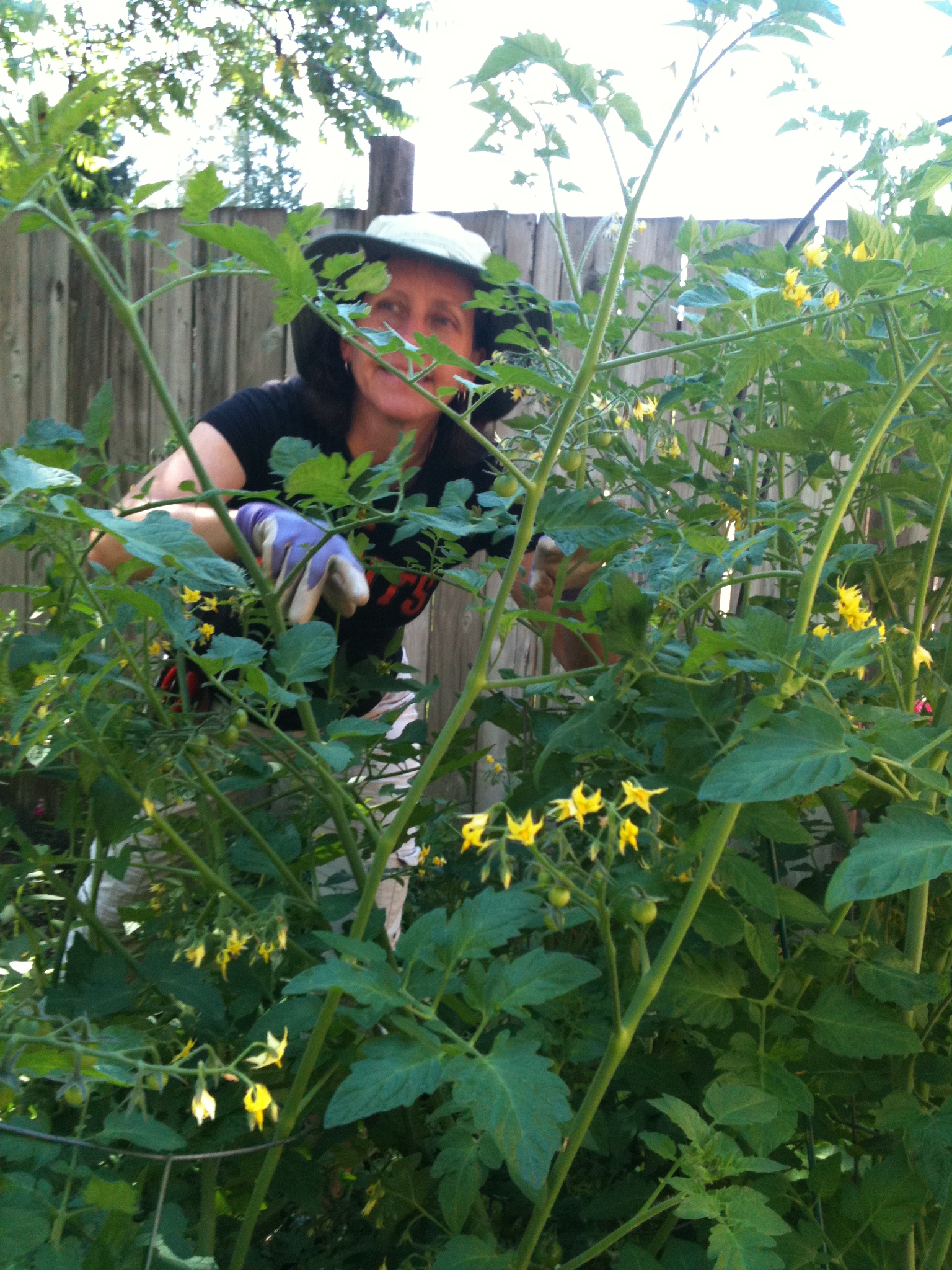 When I planted my diminutive tomato friends, they fit so well in their own little corner of the garden. Now they have reached unimaginable proportions. Going up and over into the tidy beds of lettuce and invading the corner carrot patch. But, since they are the heart of the garden, they can run where they want and have their way with the gardener (me). Who can resist a sun ripened tomato?