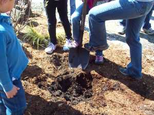 When rains blow, roots grow. The fall season is a good time to plant in the Pacific Northwest. When a tree is entering dormancy and rains provide sufficient moisture, conditions are right for planting. Transplanting in the middle of the summer is difficult because the recently disturbed roots will have a bigger job absorbing enough water and nutrients for all the leaves, as well as the rest of the plant. Following are some simple steps showing how to put a tree in the ground. This is a star magnolia that our kid’s class planted at the nursery last April on Earth Day.