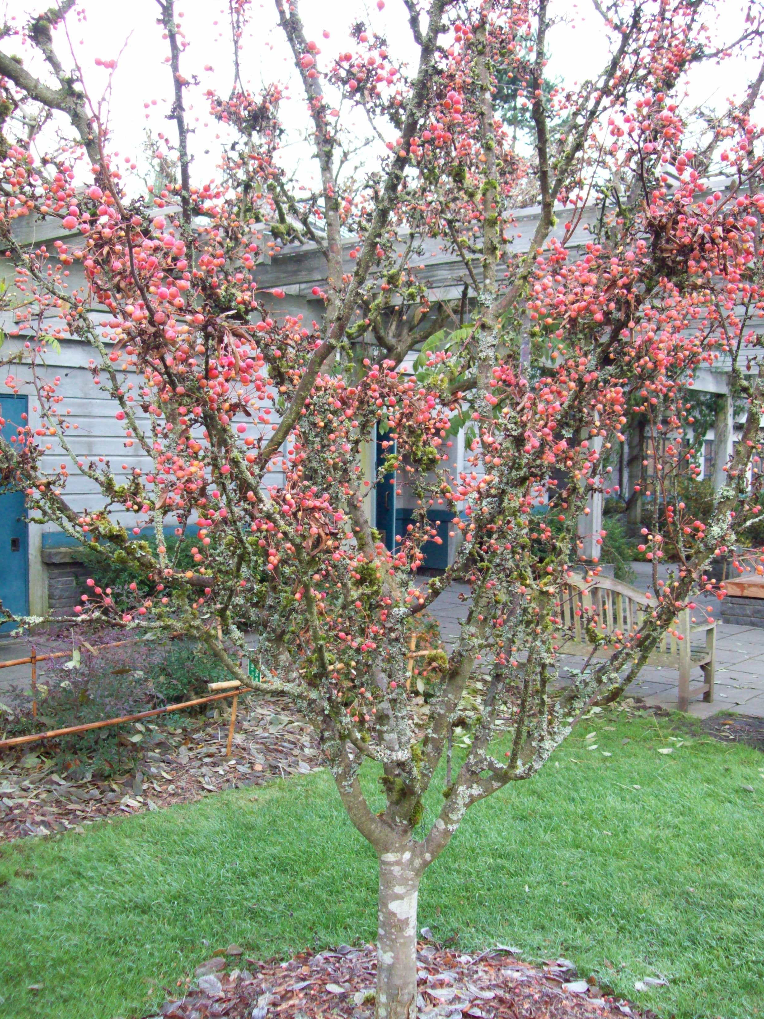 When I saw this tree last month I did a double-take.  Was it in bloom?  From the corner of my eye I noticed it awash in glowing color.  On my second look I realized it was covered in fruit.  Persistent fruit that makes this tree quite remarkable during the winter months.  ‘Adirondack’ has an interesting history.  It was introduced from the U.S. National Arboretum in 1987 and was selected for it’s disease resistance.