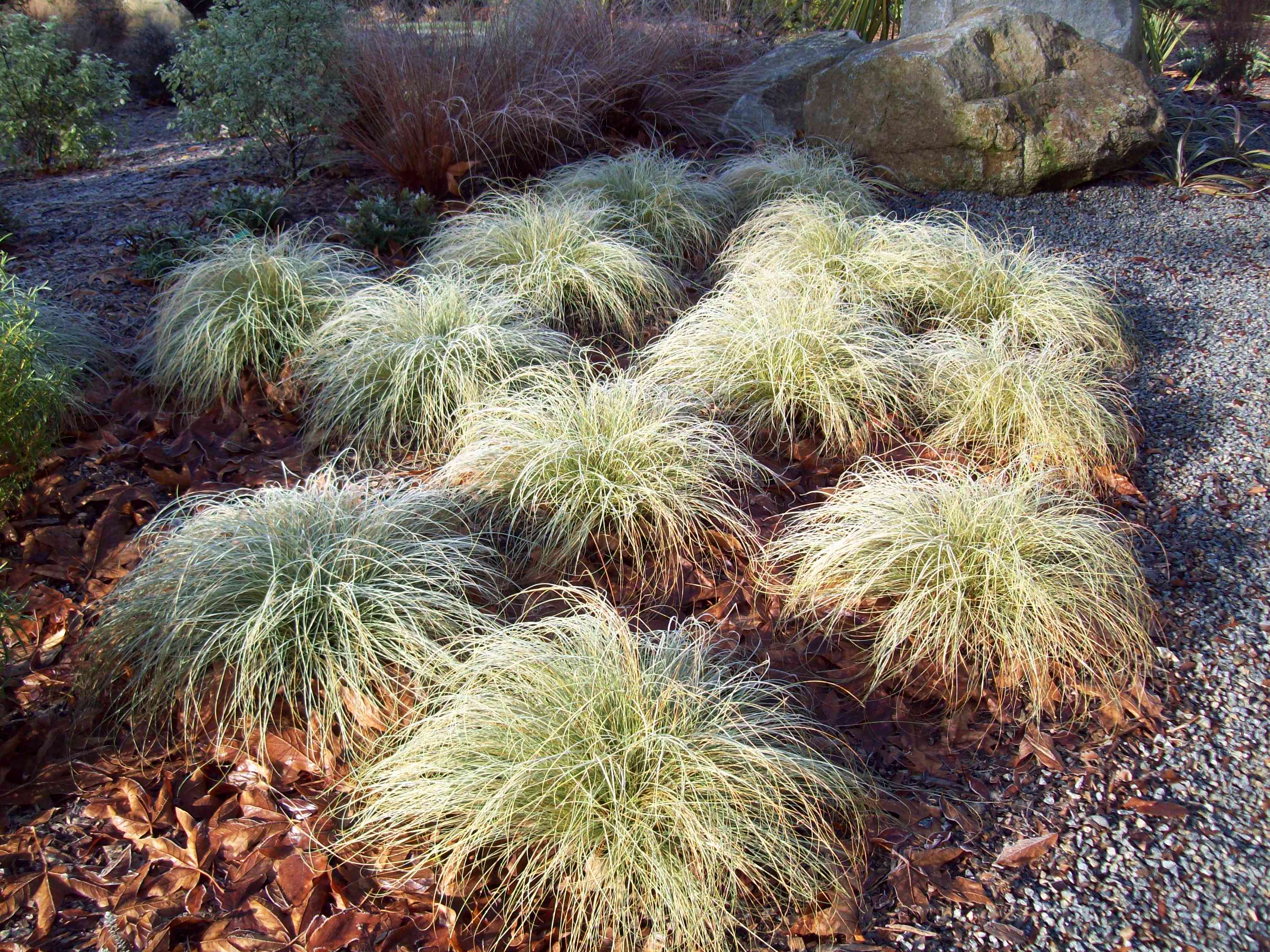 This grass is clumpy cool. Cool because this picture was taken on a frosty, frozen morning. Clumpy because it’s not bumpy, just smooth and clumpy. Any plant that looks this good in December is on my list. My good plant list. The happy list. (Are you curious about my bad plant list? Here’s a teaser….Photinia…I scowl at you every time we meet!) Carex comans or Frosted Curls or New Zealand Hair Sedge is another story. Walking by this small group of Carex I felt like I was at an art exhibit. Considering light and line. Pondering form and function. Wondering how this grass suggests movement even as it’s frozen in place. It has a rhythm and flow and appears to grow. How does it do that? A little bit of pixie dust? Shimmering, it looks like a refreshing water fountain, tumbling over itself. This planting is an example of repetition. Repetition of the same plant creating a pleasing effect. Repetition showing off the beauty more than a single specimen. Repetition moving us along a flowing river. Repetition is good with Carex comans, but it also looks great in a container. It grows best in moist, well-drained soil, sun to partial shade. This fine-textured dwarf evergreen sedge grows 12-18 inches high and will reseed, but not profusely. An exciting addition to your very-pretty-plant gallery.
