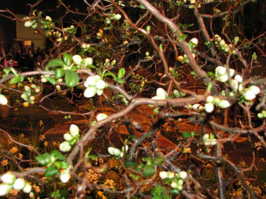 Flowering Quince was hard to photograph. My camera did not want to focus on the closer buds. The beautiful big, fat buds are almost just as good-looking as the flowers themselves. The plant itself has a pokey, crooked shape which looks great in a container.