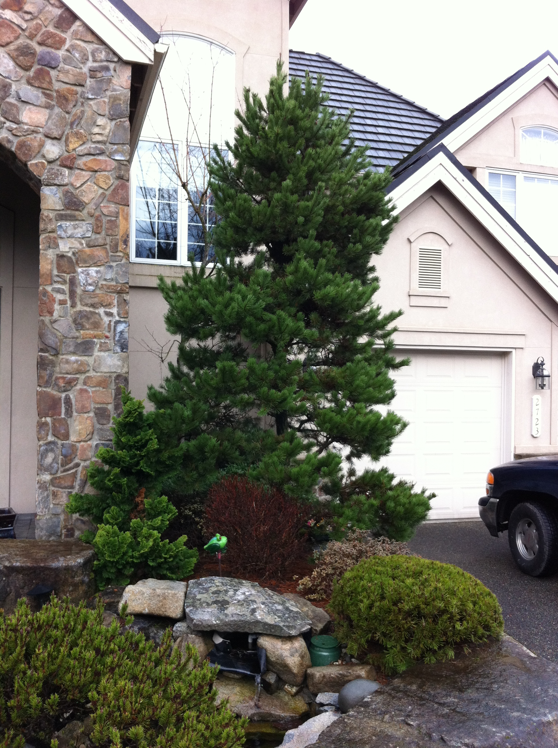 Today I worked on pruning this pine. It was hard to do because of the height, but I’m happy with the result. The client wanted a topiary look. I was wondering why the top was so thick, and when I poked my head up there, instead of one central leader, there were four! It looked like someone had topped it years ago, and the tree responded with four new limbs. Sometimes pruning just creates more problems! Have you ever had a pruning surprise?