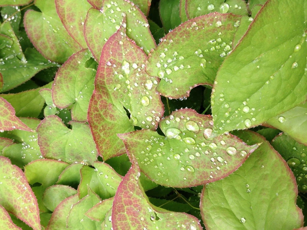 Epimedium is a plant with some funny names: Barrenwort, Bishop’s Hat, Horny Goat Weed, Fairy Wings and Yin Yang Huo. Fairy wings for the tiny graceful flowers and Horny goat Weed for the aphrodisiac qualities popular in asian cultures. The thing I like about this plant is its texture. The leaves are papery rough. They sound like rustling paper when rubbed together. They toughen with age, not like a tender hosta or a juicy begonia. Like other groundcovers, the leaves are durable. The compound leaves have spiny margins and can be corlorful with bronzy pink in spring. To see a wonderful collection of epimedium, check out the Plant Delights Website, the variety is amazing!