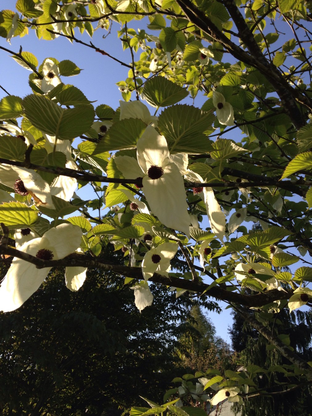 I’m collecting trees. I’m collecting them but not planting them in my yard or writing them into books. I’m creating a small forest in my mind, a woodland edge of heart shaped leaves and twisty curly needles. This collection that is slowly growing is my list of all-time favorite trees. As time goes by I announce my favorites ‘I’m only happy under a Snowbell’ or ‘The Dove tree is the best because it blooms on my birthday’. And as the years go by my interests change and grow. It usually begins with an unexpected encounter such as a vision of loveliness or a soft fragrance. It’s also the timing, such as finding the Dove tree blooming on my birthday in May. Or a tree might suddenly appear just when its needed, like the Coast Redwood with its thick, huggable bark. A new friend! The Dove tree is definitely in my collection and this year I had the opportunity to watch its new spring growth, to see the unfolding of the leaves and the unfurling of the bracts. Like baby doves, the leaves and bracts slowly opened in April and were fully fledged in May. This year was earlier than usual, perhaps by two weeks. Here are the early stages of Davidia involucrata, just one of the favorites in my collection. What are your favorites?