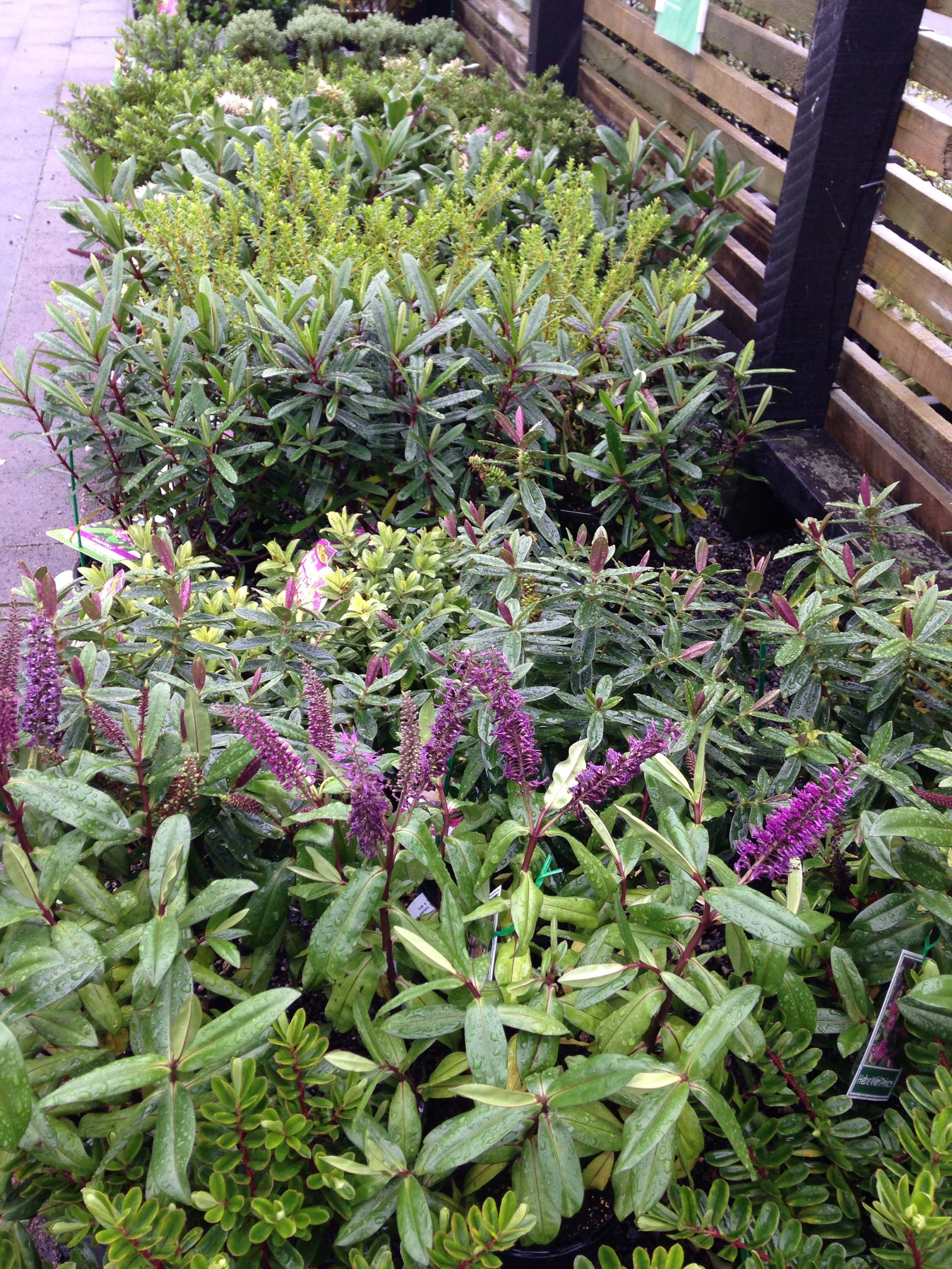 I visited Palmer’s garden center in Miramar today and was overjoyed to see so many Hebes! Small leaf, large leaf, purple and green leaf, what a great variety. I wanted to pack them up and take them home with me and see what they think of Washington. My guess is they would love it in the Northwest.