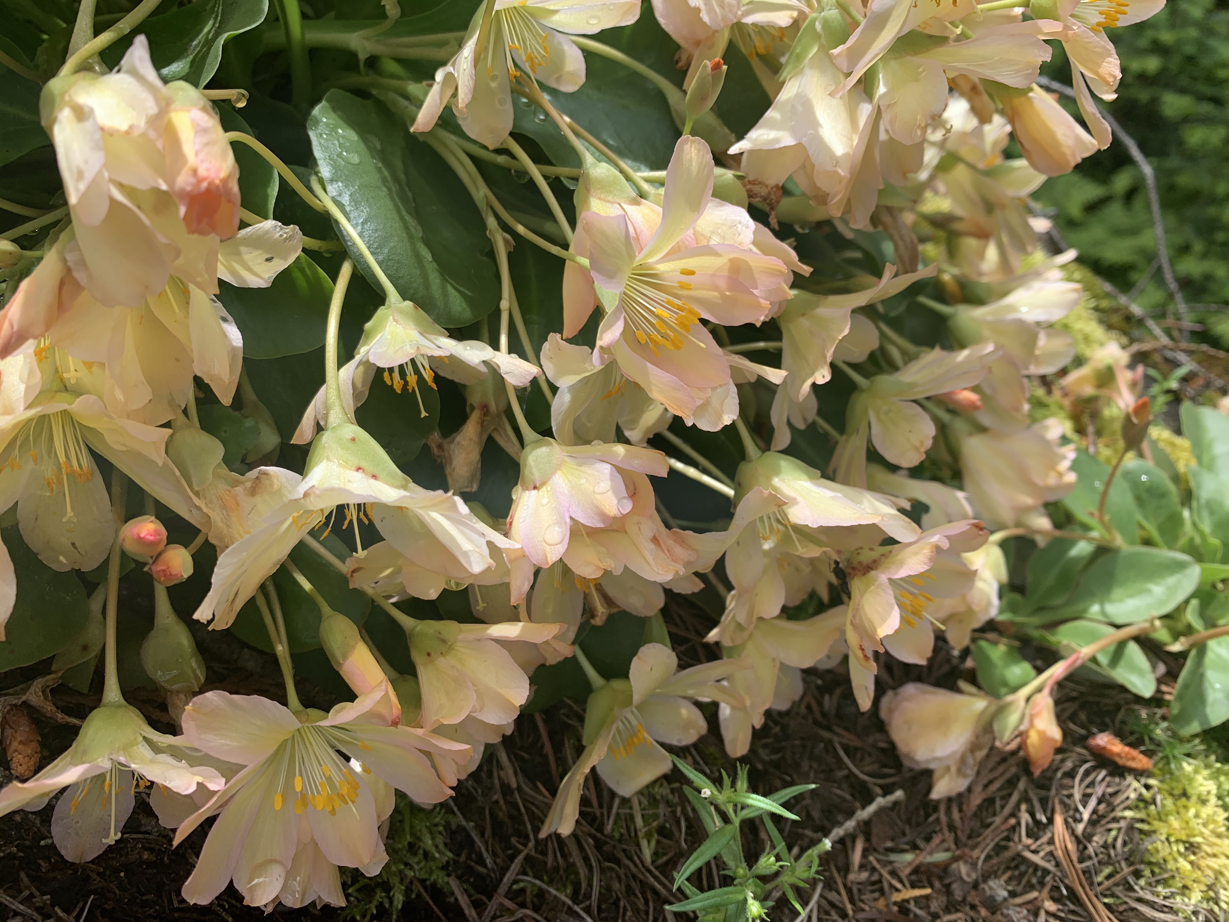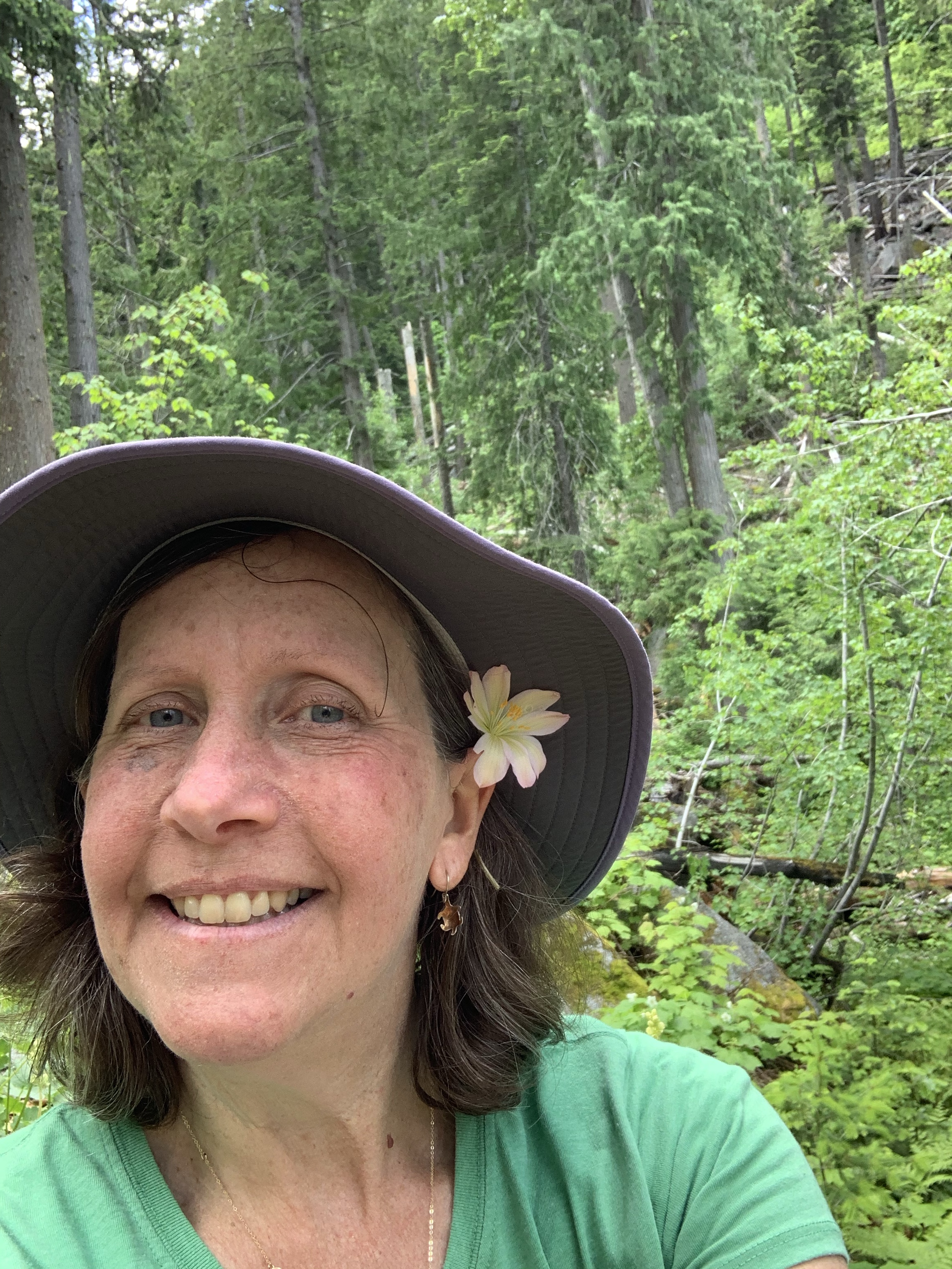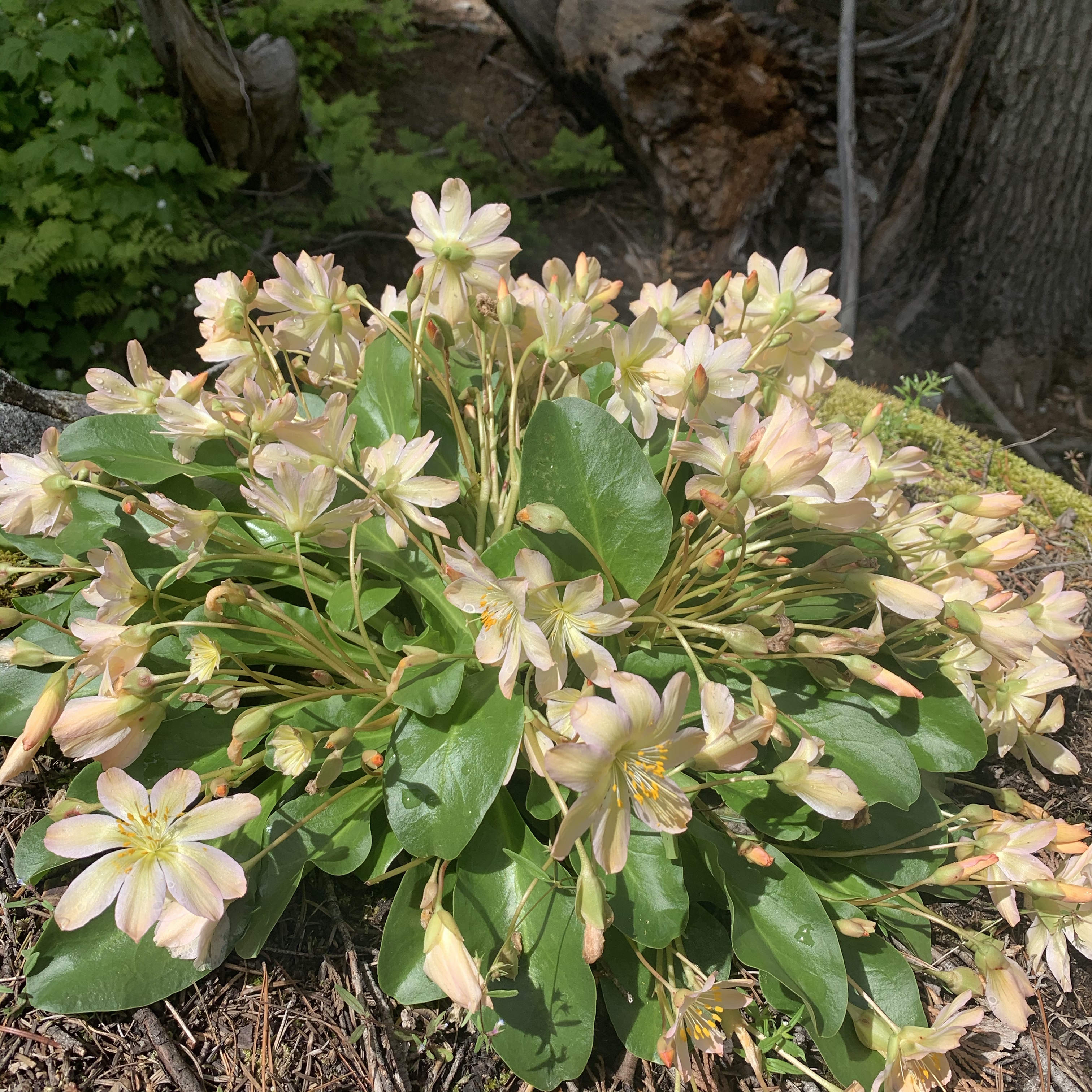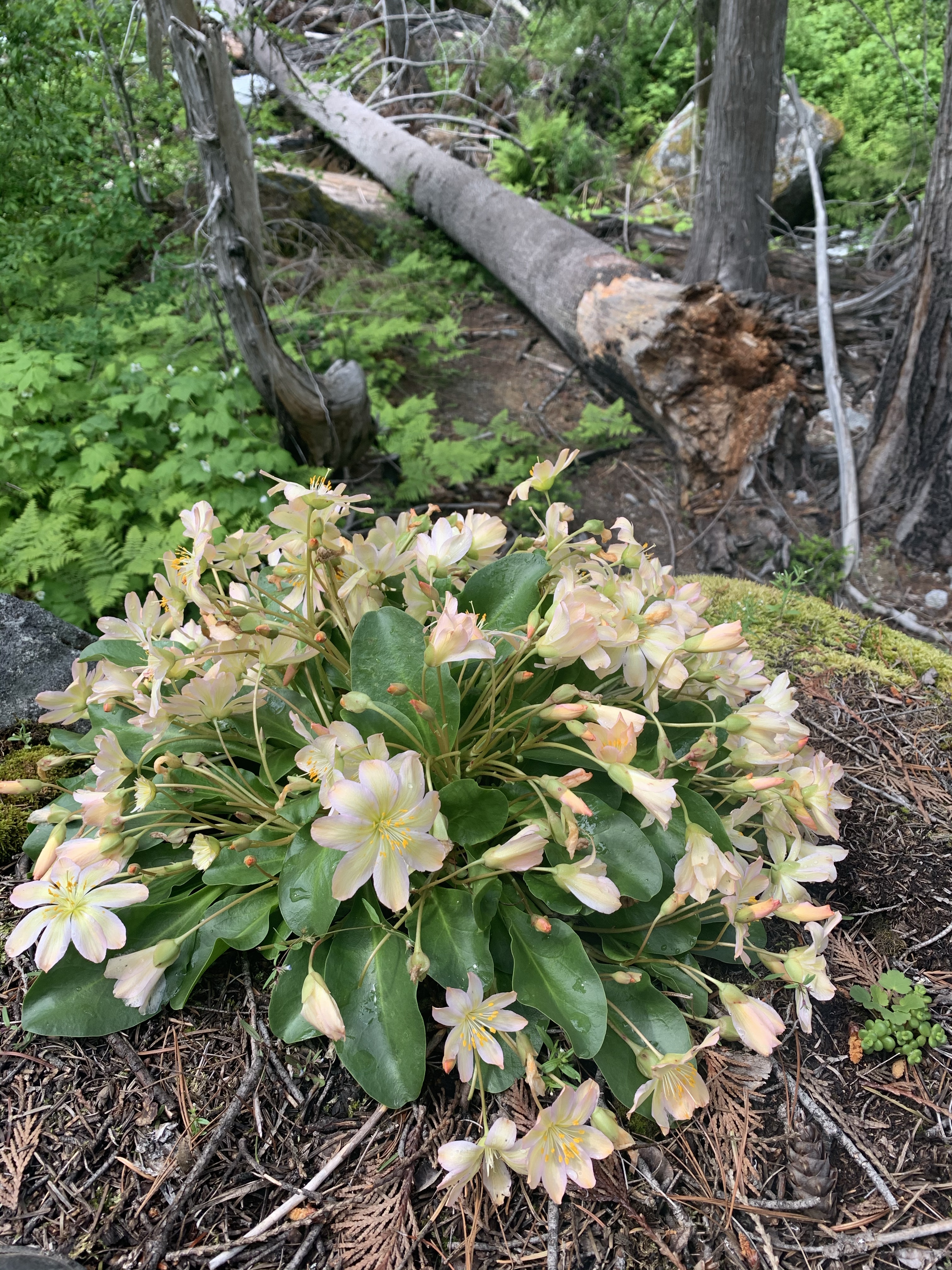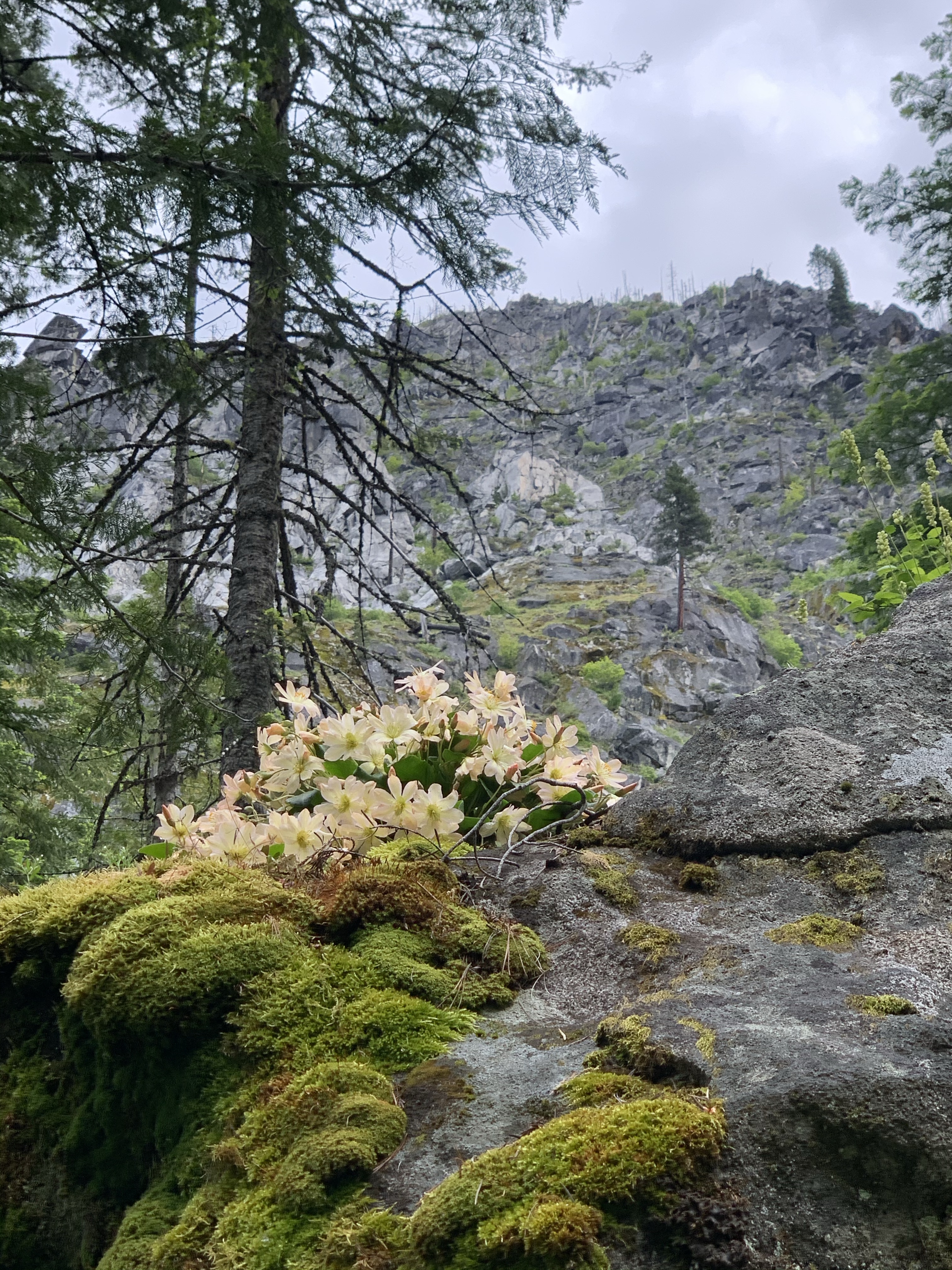 I was so excited to have it so close, that I barely paused between hikes. I had a single focus as I hiked, tweedyi, tweedyi where were you tweedyi? As the switchbacks never ceased and my body fatigue grew I told myself just five more minutes. Just one more bend. Just a bit more. I was about to turn around when I lifted my eyes to see a beautiful sunrise of color ahead of me. I knew immediately that the flower I had hunted for all day was suddenly in my presence. It was there! Suddenly the aches and pain faded away and I was filled with such happiness and delight to see this diminutive NW native wildflower blooming in its home. In the Wenatchee mountains, on a rock, under a forest canopy, with a rushing river nearby. I threw down my pack and joined Lewisia for a lovely peaceful time together. We celebrated meeting at last. We cheered, we sighed, we smiled, we climbed and photographed and snacked and observed and touched, petal to fingertip. Soft, smooth and vibrant. Lewisia at last.