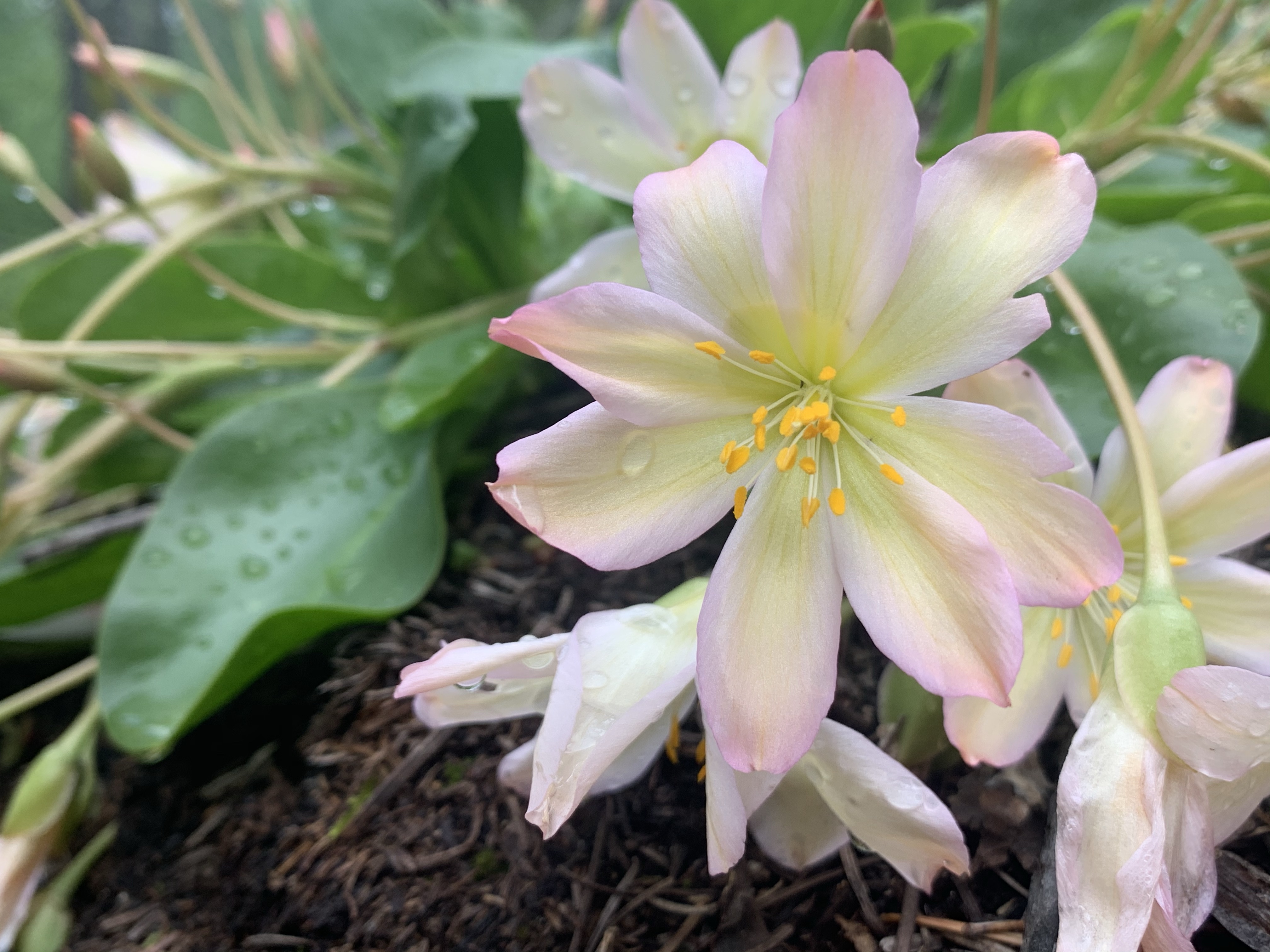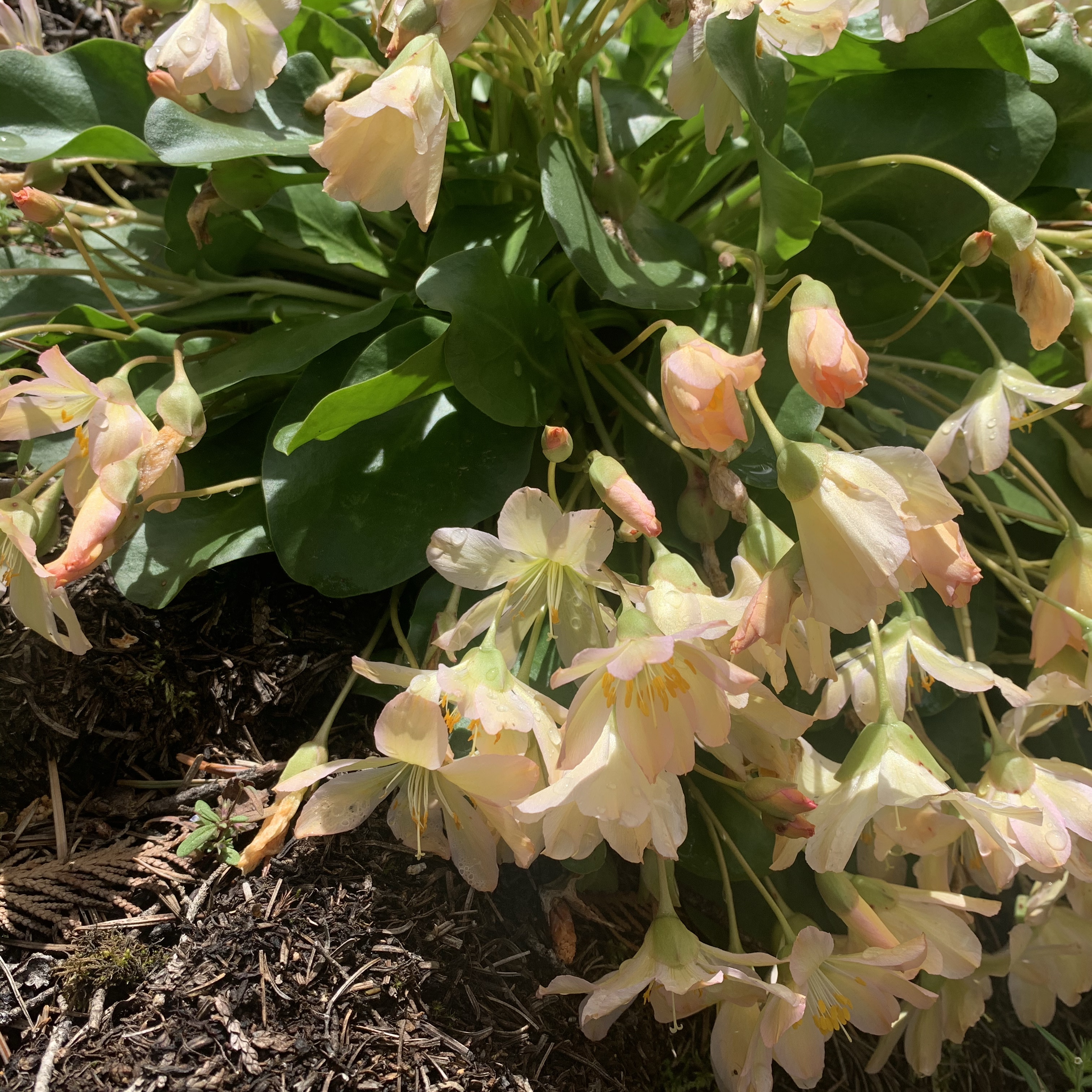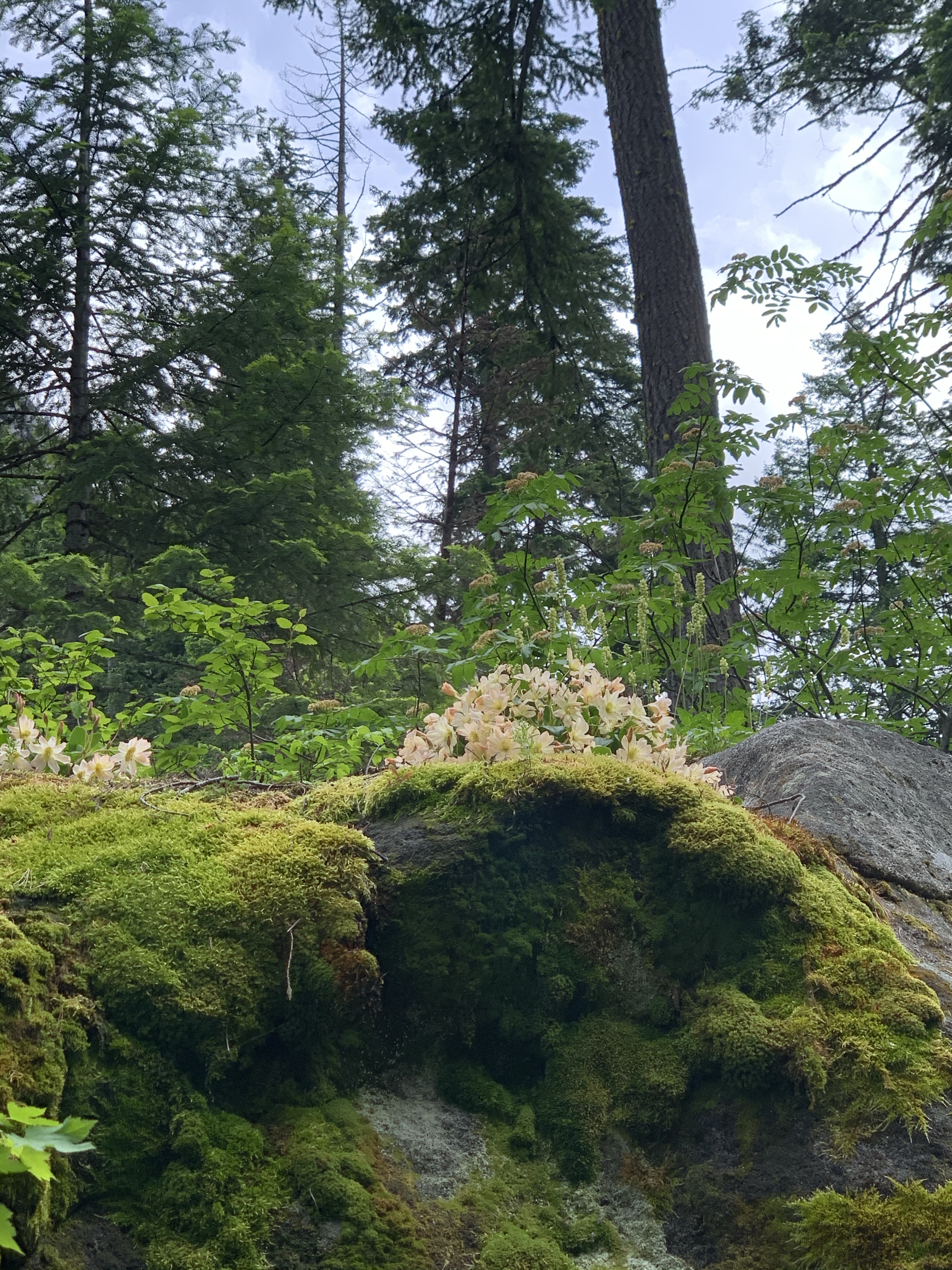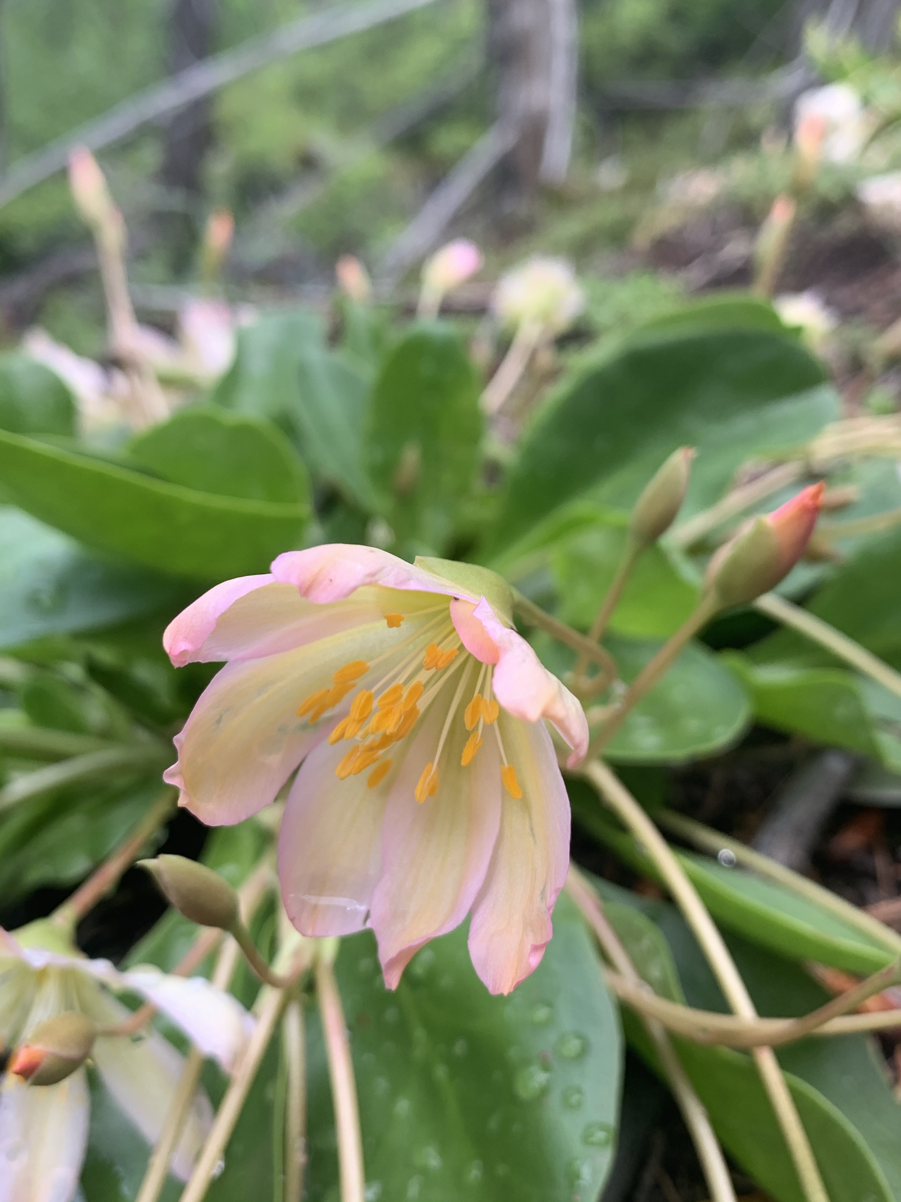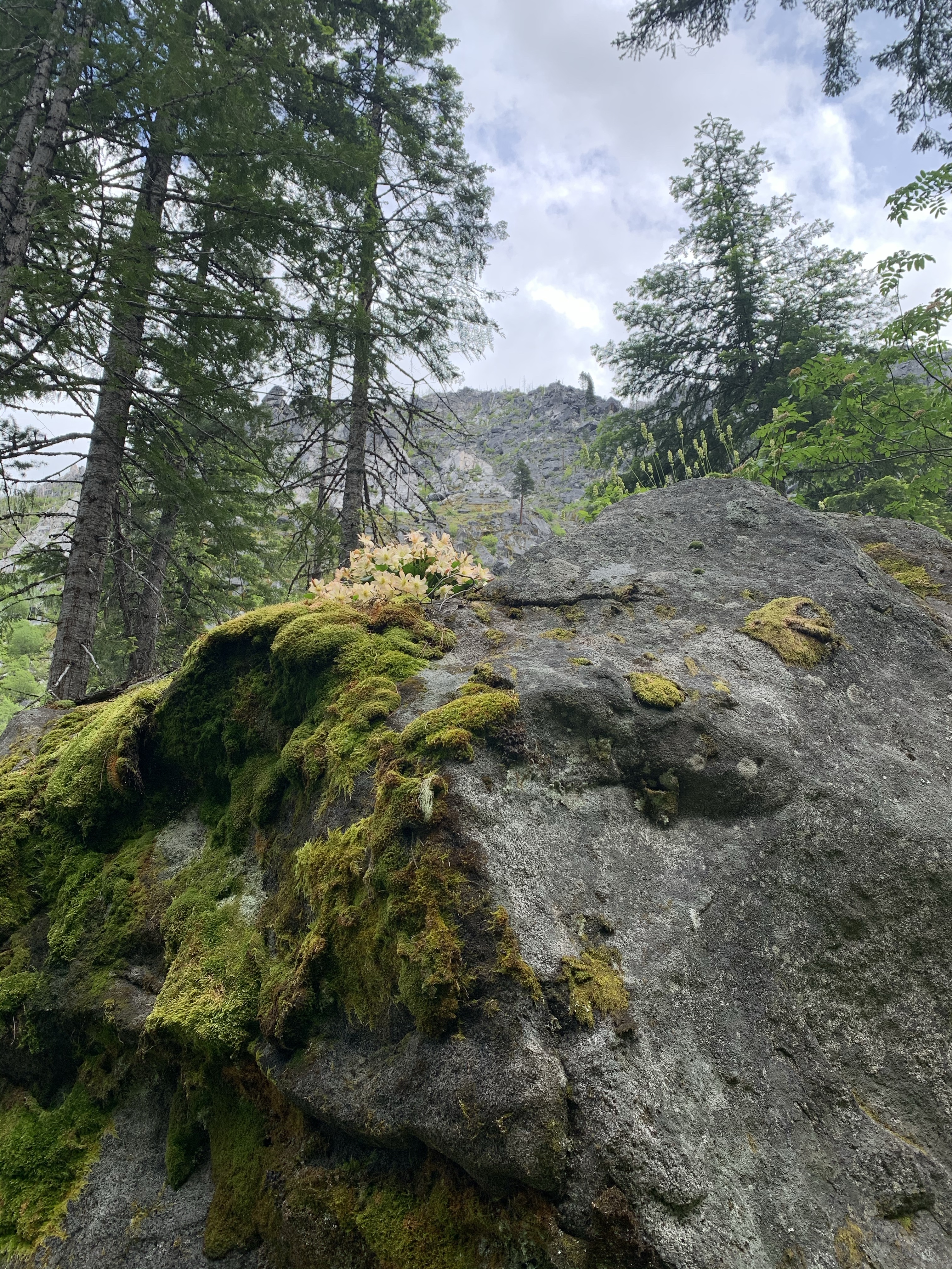 I was so excited to have it so close, that I barely paused between hikes. I had a single focus as I hiked, tweedyi, tweedyi where were you tweedyi? As the switchbacks never ceased and my body fatigue grew I told myself just five more minutes. Just one more bend. Just a bit more. I was about to turn around when I lifted my eyes to see a beautiful sunrise of color ahead of me. I knew immediately that the flower I had hunted for all day was suddenly in my presence. It was there! Suddenly the aches and pain faded away and I was filled with such happiness and delight to see this diminutive NW native wildflower blooming in its home. In the Wenatchee mountains, on a rock, under a forest canopy, with a rushing river nearby. I threw down my pack and joined Lewisia for a lovely peaceful time together. We celebrated meeting at last. We cheered, we sighed, we smiled, we climbed and photographed and snacked and observed and touched, petal to fingertip. Soft, smooth and vibrant. Lewisia at last.