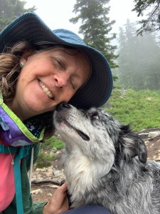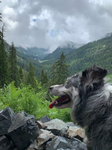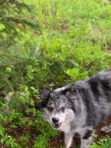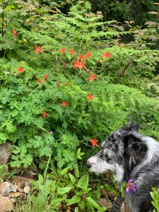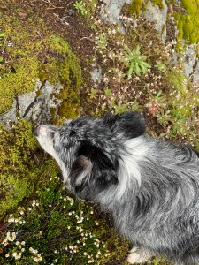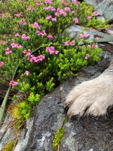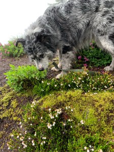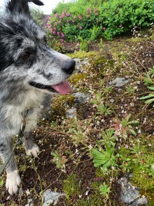 Hiking with a dog is so many things. Exhuberant, comical, frustrating and sometimes a little frightening, especially if the trail is narrow and the altitude high. Luckily my canine companion enjoys the outdoors and discovering new plants just as much as I do. Nosing in the heather, sniffing through ferns and leaping over boulders, she is filled with excitement and delight. Unfortunately she does not approve of half the dogs we meet, barking ferociously until they are out of site. Gypsy will follow me anywhere, through rivers snow fields and steep rocky trails. She is a a great dog!